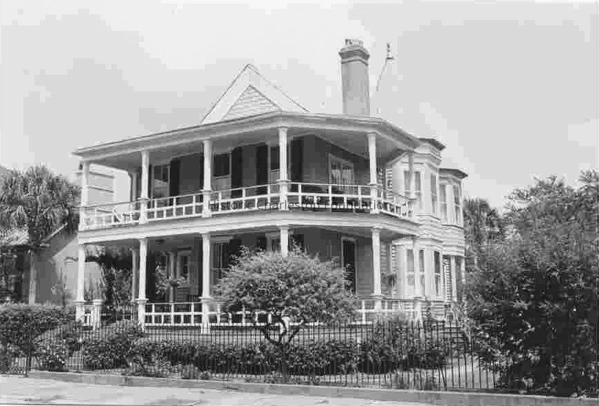 Constructed ca. 1890. This 2-story Queen Anne style dwelling, which has a double-tiered front piazza that wraps around the building to the east and terminates with an octagonal tower topped by a conical roof, survives from a pair of identical dwellings built circa 1890 after the earthquake destroyed a large house on the site. Two unmarried sisters of the Waring family bought the house in 1923. Leila Waring painted miniatures of Charlestonians in the first quarter of the 20 century, carrying on an art form generally associated with the pre-photography era. She added a northeast room as her studio shortly after moving into the building. May Waring, her sister, was a well-known local writer.