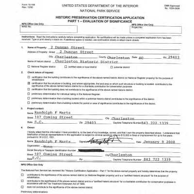*Note, narrative history is included in the Part I certification application; the 1998 application contains photos, maps, and floor plans.