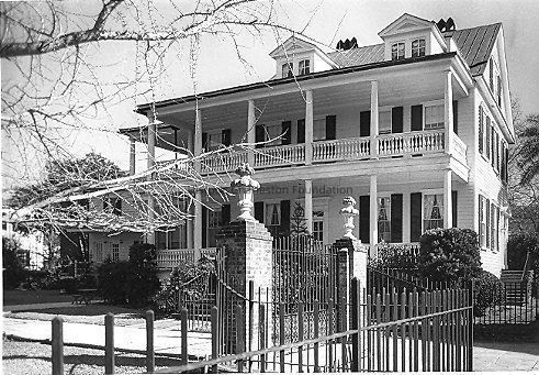 Constructed ca. 1850; altered 1885. This 2½ story, side-hall plan house retains the customary closed front gable and the double-tiered piazzas with Tuscan columns usually associated with Charleston's Greek Revival period. A subsequent owner, William P. Holmes, added Victorian detailing in 1885. Most of these changes have been removed, although the Neoclassical revival door surround has been added.