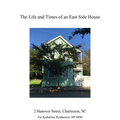 Constructed ca. 1860s (before 1872), possibly by Michael Lyons. A classic Charleston single house located on the corner of Hanover and South Street on the east side of Hanover Street. The piazza is on the south side of the house, facing South Street. The house is wood framed with weather board exterior walls, now with asphalt shingles as its roofing material.