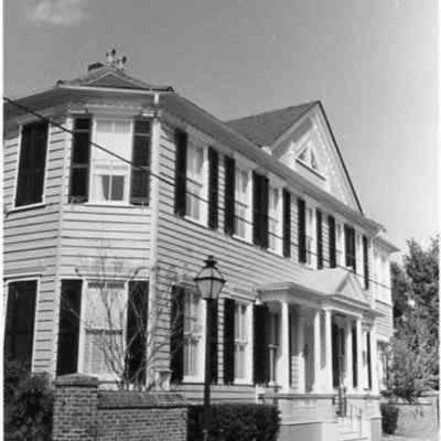 Two B&W photographs of the John Drayton House (2 Ladson Street), corner view of building showing the south (front) and west elevations. Same view, different orientations.Collection