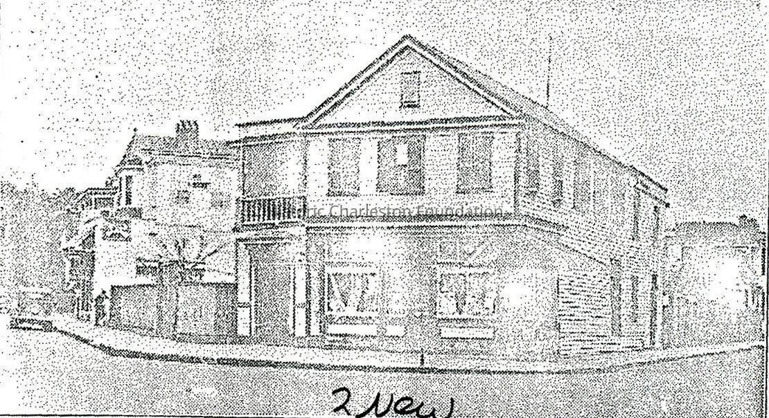 Dwelling and/or corner store located at the northeast corner of New Street and Tradd Street.