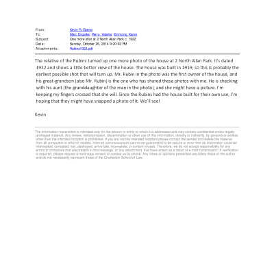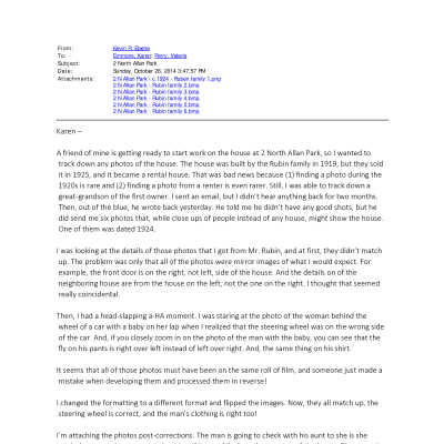 Scans of seven photographs of the Rubin family, original owners of 2 North Allan Park. Portions of the house are also in view.Collection