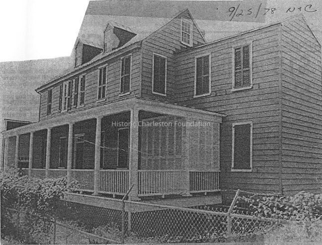 Constructed before 1788. Built by Basile Lanneau, a tanner and currier, this 2½ story frame single house formerly stood at 34 St. Philip Street. It was moved by the Preservation Society of Charleston in 1974 to prevent its destruction for a city parking garage. (A new garage and retail stores replaced the original garage in the early 2000s.) By coincidence, the house Lanneau built on St. Philip Street is now across the street from several houses that were also built by Lanneau and his family. (Tour Guide Manual, 2011)