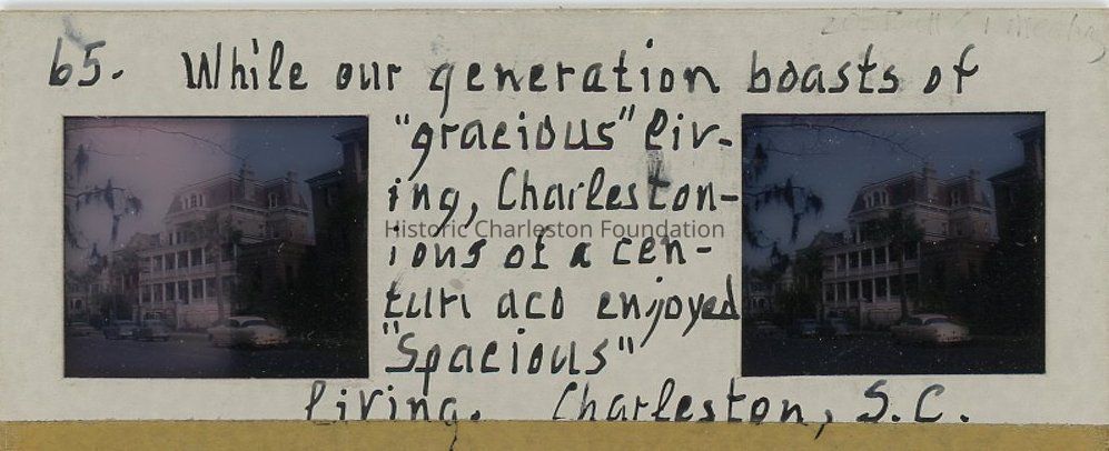 Captioned "While our generation boasts of gracious living, Charlestonians of a century ago enjoyed spacious living."