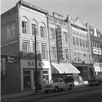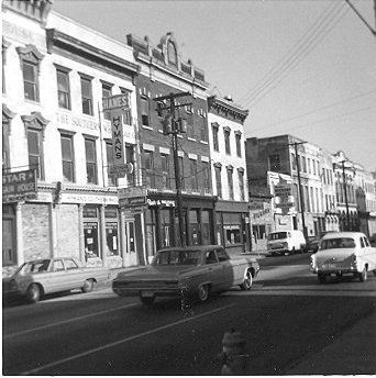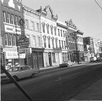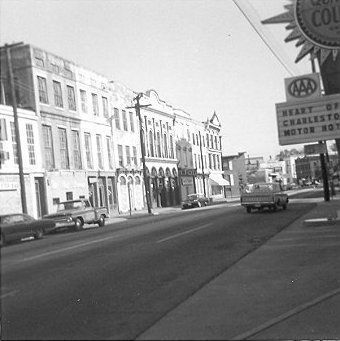 f: 219-235 Meeting Street, viewed from across the street. Also shows the sign for the Heart of Charleston Motor Hotel at right (former site of The Charleston Hotel).