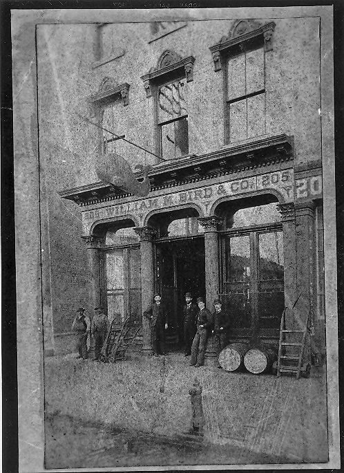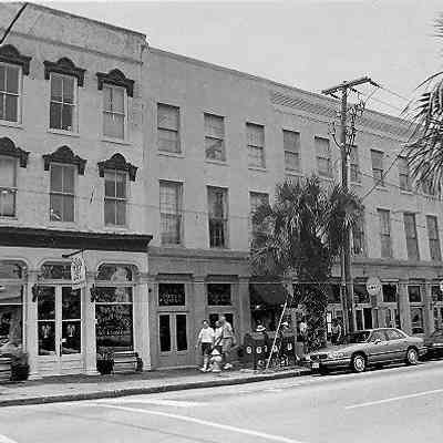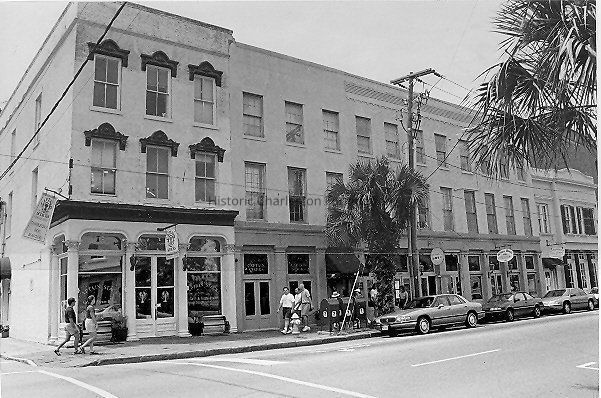 Constructed before 1831; altered ca. 1850, 1870, 1886-87; rehabilitated 1980s. These structures retain some brick walls dating from the 1770s tenements owned by the Manigault family. The present Greek Revival character of 205 East Bay and particularly the range to the north probably date after 1831, when Dr. Philip Moser acquired the corner. One of the many owenrs, Charles H. Bass, sold 205 East Bay to William Bird in 1870. The William Bird Company, a hardware and paint company, occupied the corner building, and eventually spread its operations to the adjacent range owned by James Marsh. The cast-iron colonnade on the 1st floor and the Italianate window heads above date from the postbellum period, while the pilastered granite storefront unites the 3 buildings to the north. (Source: The Buildings of Charleston by Jonathan Poston.)