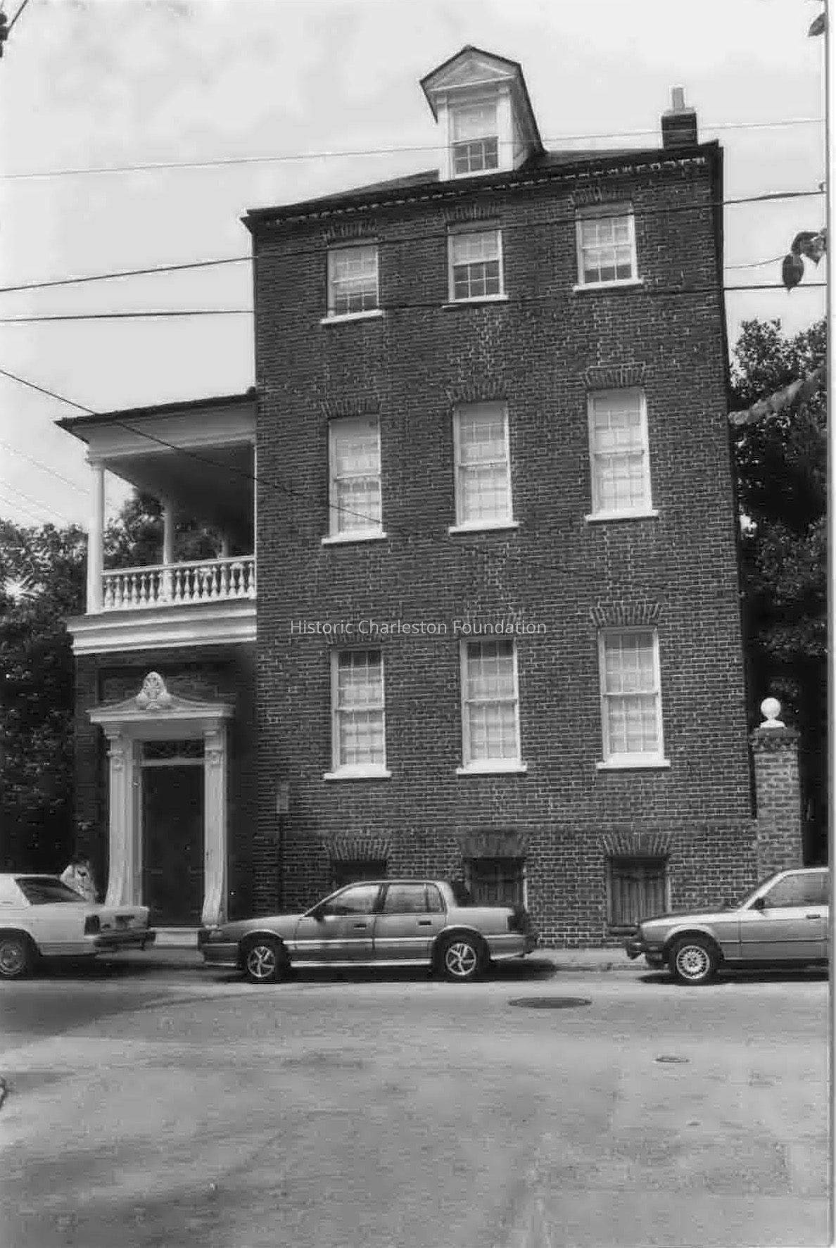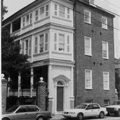 Constructed 1808-15; restored and rehabilitated mid-20th century. Dr. Samuel Wilson constructed these similar 3-story brick single houses on a portion of the Mazyck lands inherited by his wife, Catherine Mazyck, granddaughter of the Huguenot immigrant Isaac Mazyck. Wilson built 23 Archdale first, but by 1808, the Wilson family was living in 21 Archdale Street at the corner of Magazine and Archdale Streets. Wilson left in his will the house at 23 Archdale to his son William Handy Wilson, and left the slightly larger and later house at 21 Archdale to his son Dr. Isaac Mazyck Wilson. The houses were among a number of properties purchased in 1840 by Etienne Poincignon. Although both houses have exceptional brickwork laid in Flemish bond, 23 Archdale retains its original piazza door screen, as well as much of its original exterior and interior Federal details. It is one of Charleston's best houses of the Adamesque period. By contrast, significant Greek Revival style alterations mark 21 Archdale, including the pedimented dormers, the piazza columns and balustrade, and the piazza door screen with its carved anthemion motifs ornamenting the overhang and the scrolled pilasters. These houses were saved and restored by John Muller, a leading Charleston preservationist.