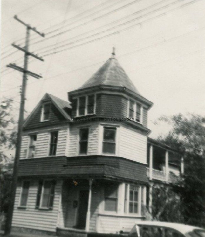 Sarah Westcoat acquired the lot and became one of a group of women builders of houses in Mazyckborough-Wraggborough during the Victorian period. Just before the turn of the century, Emily Alice Honour added an octagonally shaped three-story tower with shingle banding after purchasing this 1870s Italianate Charleston single house with simple double-tiered piazzas. The slight indentation of the tower from the body of the main building provides a curious set-back entry door and one-bay front porch. (Poston, Buildings of Charleston.)Collection