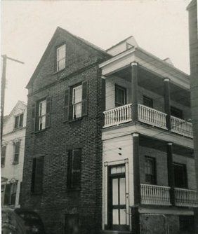 B&W photograph of 21 Wentworth Street, street (front) elevation, view of piazzas. ARP [Ansonborough Rehabilitation Project] written on verso.Collection
