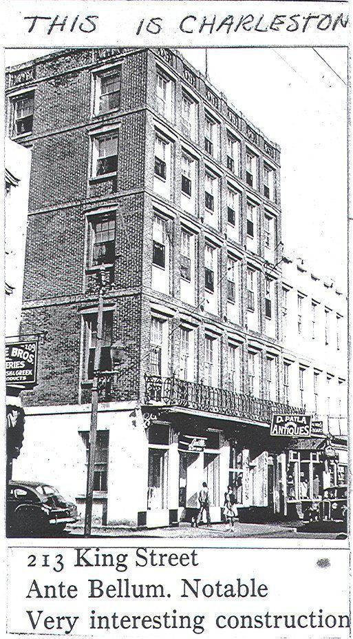 Notes: Address discrepancies: main occupant, Saks Fifth Avenue, is listed as 211 King Street; Victoria Hotel listed as 217 King Street; Old Codgers lists Saks Fifth Avenue as 211 King Street; This is Charleston identifies Victoria Hotel as 213 King Street.