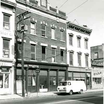 b: 215 Meeting Street (Stevens Wholesale Co.) and 217 Meeting Street (Wolper Shoe Co.). Portion of 213 Meeting Street at left; portion of 219 Meeting Street (Andy's Hickory House) at right.Collection