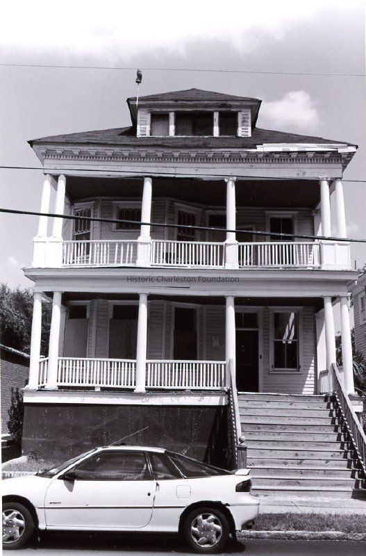 B&W photograph of 22 Bennett Street, street (front) elevation. Photographed as part of "Historic Charleston Foundation's Endangered Structures Report" (see P156).Collection