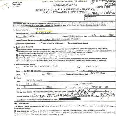 Preservation Consultants files for 231 King and 233 King (Part I and/or Part II applications and/or photos and/or miscellaneous documentation), 2011.022.1Related Publications