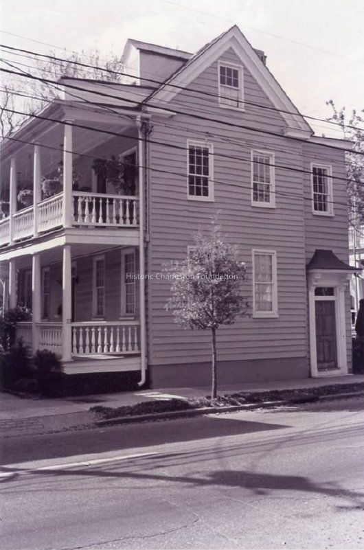 Constructed ca. 1830. A widow, Mary Gray, acquired this house in 1841 from James Stevens, the trustee for the "marriage settlement" of Ann Hunt and her husband, Nathaniel Hunt. The dwelling passed through various owners, but it was W.K. Brown who held it until the end of the 19th century. The early-19th century single house form -- with nine-over-nine windows on the first story, surmounted by an open gable roof with three projecting dormers -- was altered in the late-19th century by construction of a north addition with a new Italianate style entry. These alterations transformed the structure into a duplex. The property to the south at 21 Coming Street passed as a vacant lot to Mrs. Gray when she acquired 23 Coming Street. Either John Zanoga or W.K. Brown built the two-story Italianate style dwelling here in the 1870s. (Poston, Buildings of Charleston.)Collection
