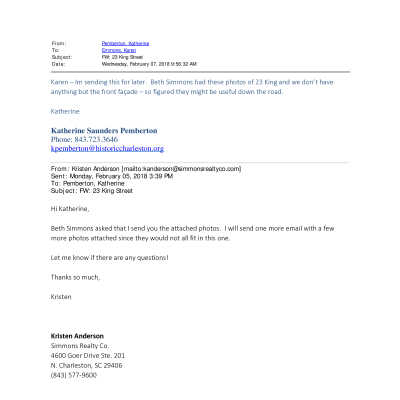 Sent to Katherine Pemberton by realtor Kristin Anderson (Simmons Realty); possibly taken by Beth Simmons.Copyright