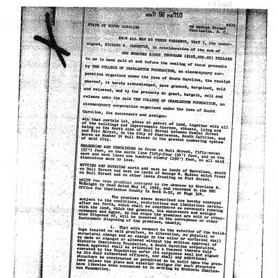 File contains newspaper article (DYKYC); excerpt from City of Charleston Tour Guide Training Manual; documentation of the covenant on the buildings (Deed, 3/12/1971); right of first refusal documentation.Collection