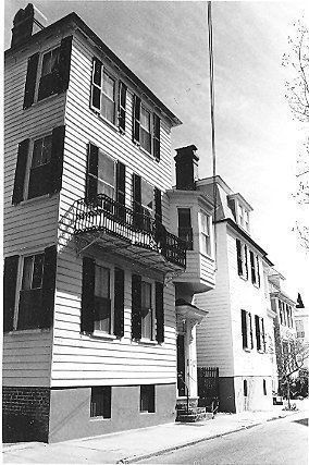 The houses at 16-24 King Street were constructed in the nineteenth century; variously altered twentieth century, and is an interesting collection of single houses that reflect a typical 19th century Charleston streetscape. While some of the structures date from the early-19th century, the John Laurens North House at 24 King Street predates the 1820s. Some late-19th century alterations, such as the mansard roof on 22 King Street, reflect changes over time. Even the wrought-iron balconies that adorn the facade of 24 King provide insight to the evolutionary changes of a streetscape. Although their craftsmanship might date them to the construction of the house, this balcony and its likeness across the street at 23 King Street were removed from the facade of 56-58 Broad Street.