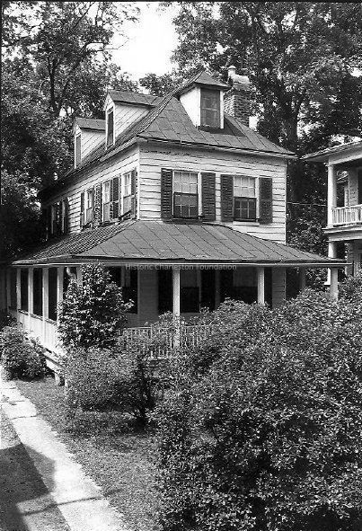 Constructed 1802-06. In one of Harleston Village's most picturesque settings, this 2½ story single house with a simple wrapping piazza provides a distinct impression of the early rural character of the neighborhood. The merchant Daniel Bruckner purchased this lot from a fellow German tradesman in 1801, and probably completed the house by 1806. Christiana Elizabeth Cobia, mother of Daniel Cobia, purchased the property shortly before completion of the family's house nearby at 20 Montagu Street. The Cobia family held the property through several generations, selling it in 1938. The house displays exterior details such as wide-beaded weatherboarding and a hipped roof, as well as interior features such as Federal-style woodwork and early hardware.