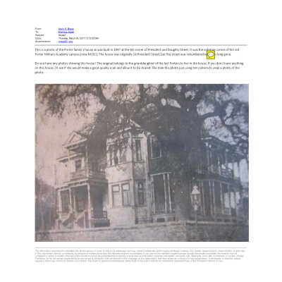Sent via email from Kevin Eberle, 3/30/2017, who received it from the granddaughter of the last Porters to live in the house. (See email on Media tab.)Copyright