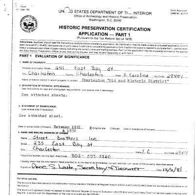Preservation Consultants files (Part I and/or Part II applications), 2011.022.1, and 1983 photos (2011.022.2).Related Publications