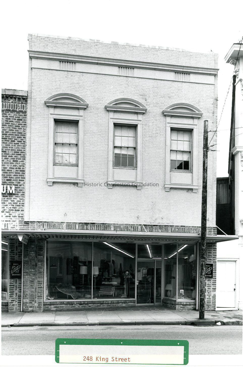 B&W photograph of 248 King Street, street (front) elevation. Appears to be part of C.B. Prentiss Carpets Draperies Linoleum next door (250 King), formerly My Shop women's clothing store.