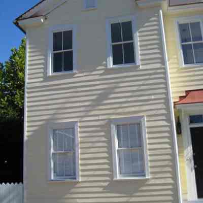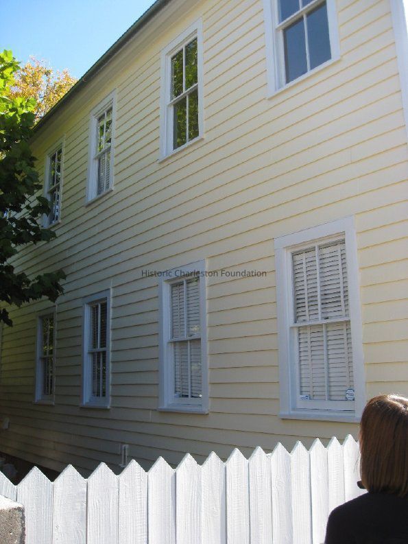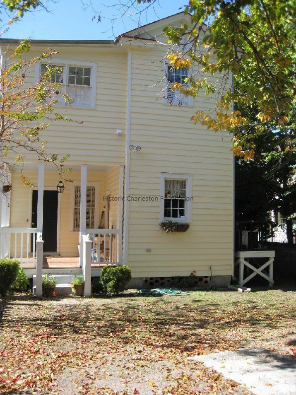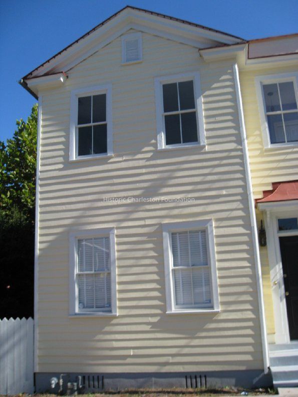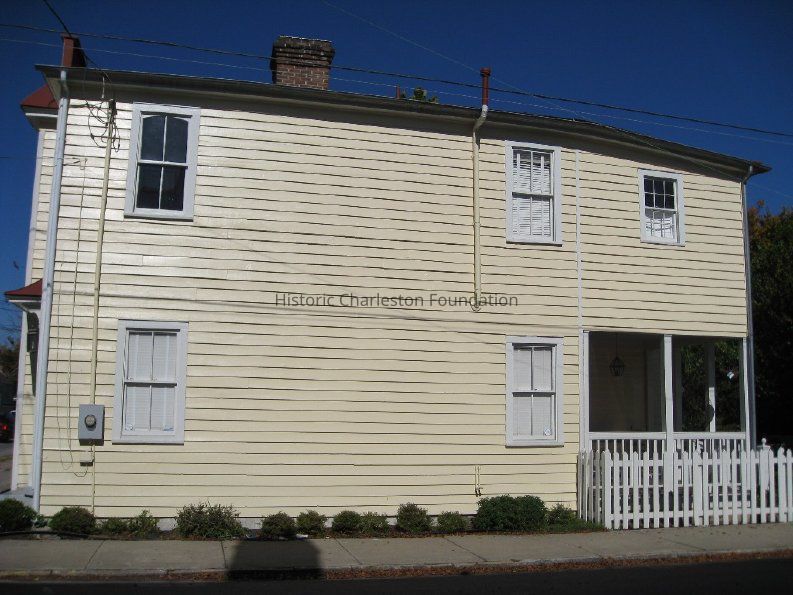 Constructed 1907. Typical Charleston single house with enclosed piazzas, located at the corner of Ashley Avenue and Bogard Street. Hurricane Hugo caused extensive damage to the house. HCF purchased the house through its Neighborhood Impact Initiative and stabilized it through the Crafts Training Program, with "sweat equity" contributed by the home owner.