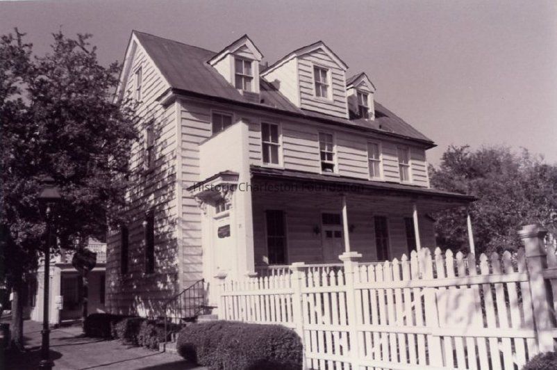 Constructed ca. 1798; moved from 25 St. Philip Street in 1977. James Denton, tavern keeper, wharf master, and carpenter, built this small 2½ story, open-gabled, single house on the glebe lands at 25 St. Philip Street. Significant Victorian changes to the building include the Italianate piazza screen and two-over-two windows. After the house was moved to Coming Street in 1977, the middle dormer was rebuilt to create a third-story bathroom. (Poston, Buildings of Charleston.)Collection