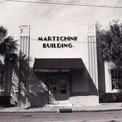 Constructed 1941-42; rehabilitated 1986. This building was constructed by the Martschinks, a family with extensive real estate interests in this section of Charleston, and originally housed a wholesale magazine distributorship and warehouse. One of Charleston's few urban examples of the Art Deco style, the structure has a front brick facade with a central pavilion that is flanked by stylized pilasters terminating in decorative panels. The windows on either side are surmounted by decorative spandrels with a Greek key motif. Later served as an electric supply company and a restaurant. (Buildings of Charleston, p. 347-348.)Collection