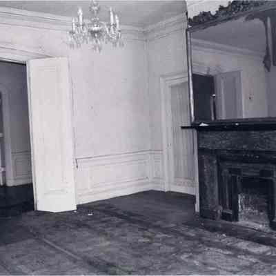 49 B&W photographs of 274 Calhoun Street (Daniel Cannon House). Five views of exterior features and forty-four views of interior rooms and architecture features such as mantels, fireplaces, doors, doorways, windows, moldings, staircases, ceiling ornaments, stenciling (floors), etc.