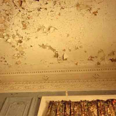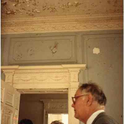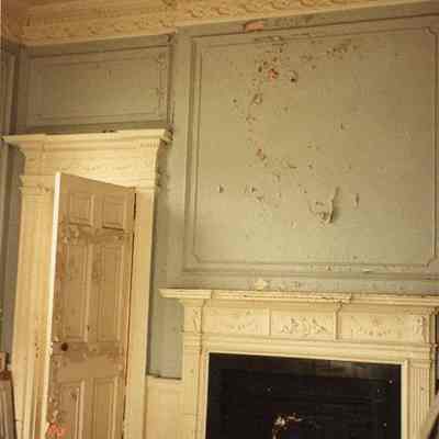 Thirteen color photographs of 286 Calhoun Street (Jonathan Lucas House) before restoration. One view of the exterior (west elevation) and eight views of interior rooms and details.