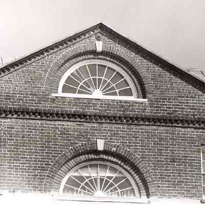 Two B&W photographs of the upper story details of 286 Meeting Street.