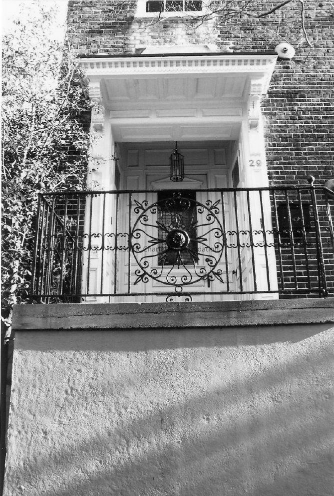C: Detail of ironwork and doorway. (Scanned in this record.)