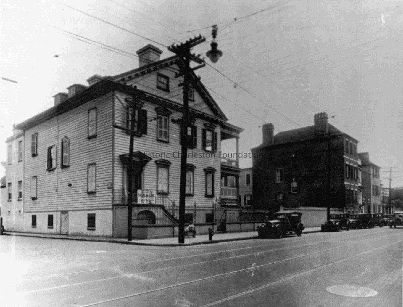 Demolished in the 1930s and replaced with a gas station, the demolition of this building was one of the inspirations for city council's enactment of America's first historic zoning ordinance in 1931 and to create the nation's first historic district and Architectural Review. The brick and other elements (columns, balusters, and window surrounds) saved from the demolition were used in HCF's Frances R. Edmunds Center for Historic Preservation at 108 Meeting Street. (Poston, Buildings of Charleston.)
