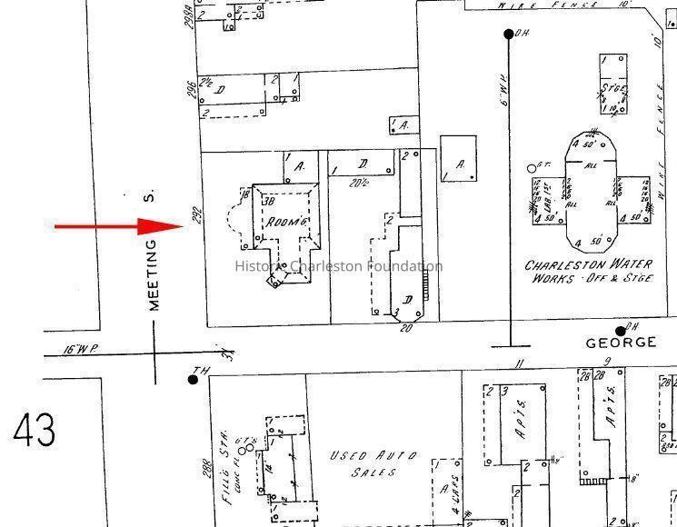 Two B&W photographs of 292 Meeting Street (demolished), located at the northeast corner of Meeting and George Streets: