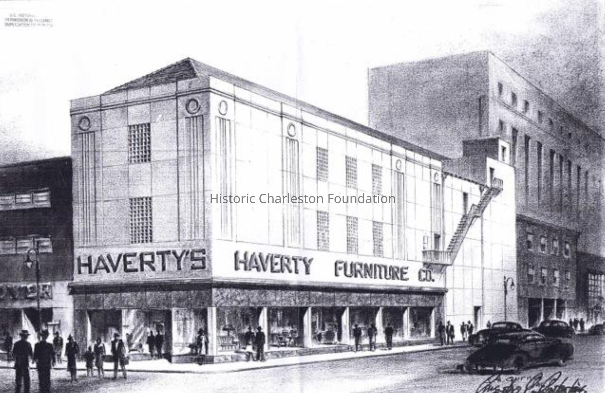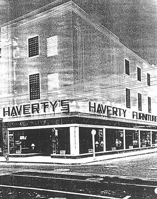 File contains description from Old Codgers Address Book; photocopy of photograph of Haverty Furniture Store after a 1947 remodeling (otherwise unattributed); graduate student report (Amber Anderson, 2013) on the history of the building, which includes historical and chain-of-title research, maps, photos, and other supporting documentation; historical research "notes on building history" with newspaper articles and maps (Sarah Fick, 2015).