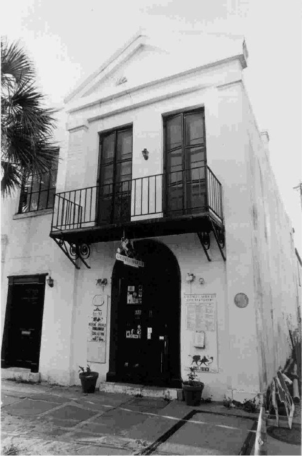 Constructed ca. 1735 (front portion, ca. 1800-10 (rear portion); renovated ca. 1835. Dr. Frost's 2-story, gable-ended office may incorporate a portion of a double tenement constructed about 1735 by the colonial physician Dr. John Martino and subsequently sold to Dr. Alexander Garden, the colonial horticulturist for whom the gardenia is named. (Dr. Garden's principal plantation, "Otranto" at Goose Creek, is today surrounded by a subdivision.) The front portion of the building was subsequently renovated after 1835, when Dr. Henry Frost took a mortgage to construct a building on this site. The first-floor front room contains woodwork from Belvedere [a/k/a Belvidere] plantation house, the circa 1800 Charleston Neck seat of Col. Thomas Shubrick. The plantation house was demolished in 1925 by the Standard Oil Company, and the interior detailing was subsequently installed. The front entry door with fluted pilasters and semi-circular fanlight probably came from Belvedere. (Poston, Buildings of Charleston.)