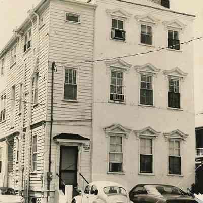 B&W photograph of 303 East Bay Street, front (east) elevation and showing the southeast corner of the building. Cars parked in front and along the side of the building.Collection