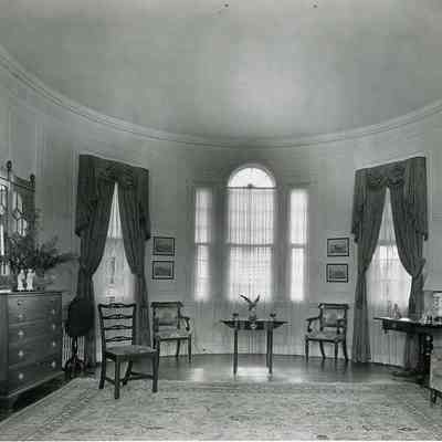 c-d: Two views of the drawing room. Palladian window at center of photo.