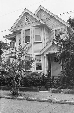 Constructed 1900-02. One of the later residences on the street, Sarah Martin's house exemplifies the fully developed Queen Anne style in a Charleston context. A gable-ended porch sheathed in overlapping wood shingles surmounts the front entry. Similar shingles cover the gabled roof and the cross gable of its projecting front bay. A double-tiered piazza with Queen Anne style columns and balusters shades its south facade.