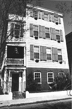 Constructed ca. 1796. Although built by Elizabeth Robinson, this three-story wood single house was occupied from its completion until 1813 by Peter Freneau, an editor of the City Gazette and secretary of state for South Carolina. Freneau's more famous brother was Philip Freneau, an anti-Federalist editor. The house retains an early 20th-century shingle sheathing that obscures its origins, but it also retains an early scored masonry ground story. (Poston, Buildings of Charleston.)