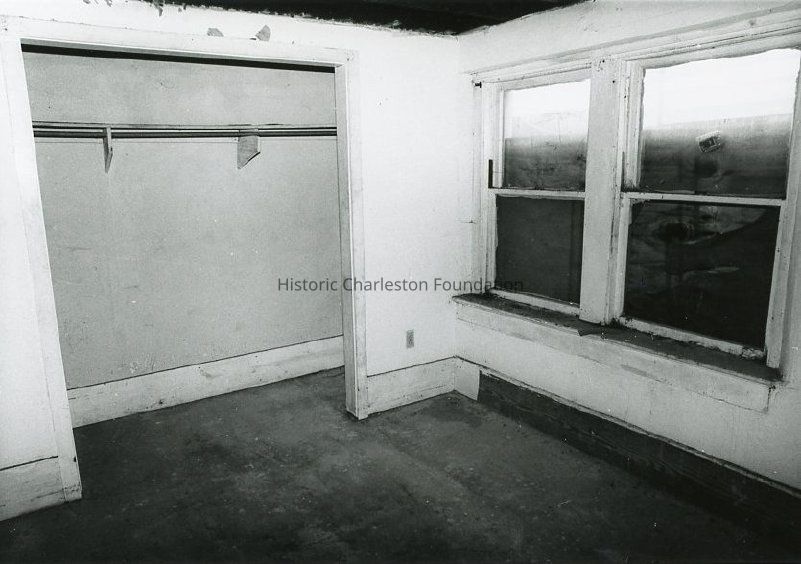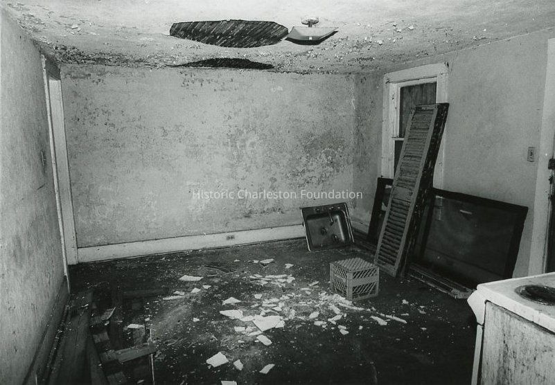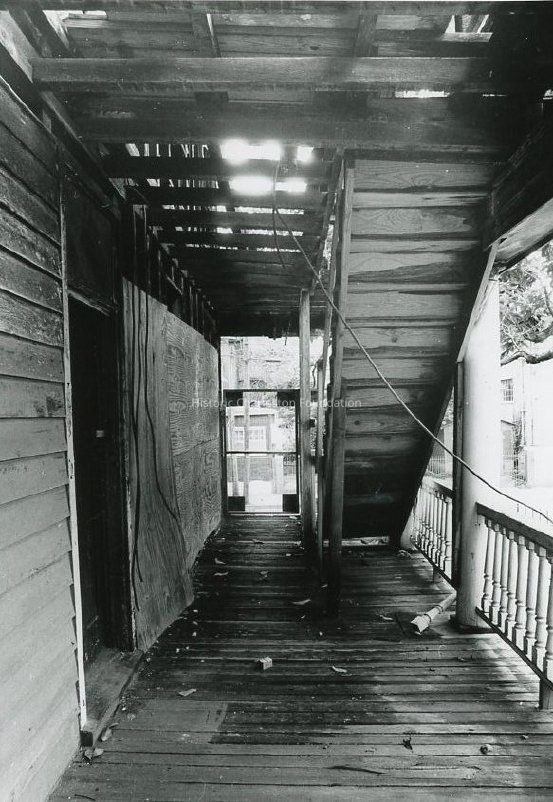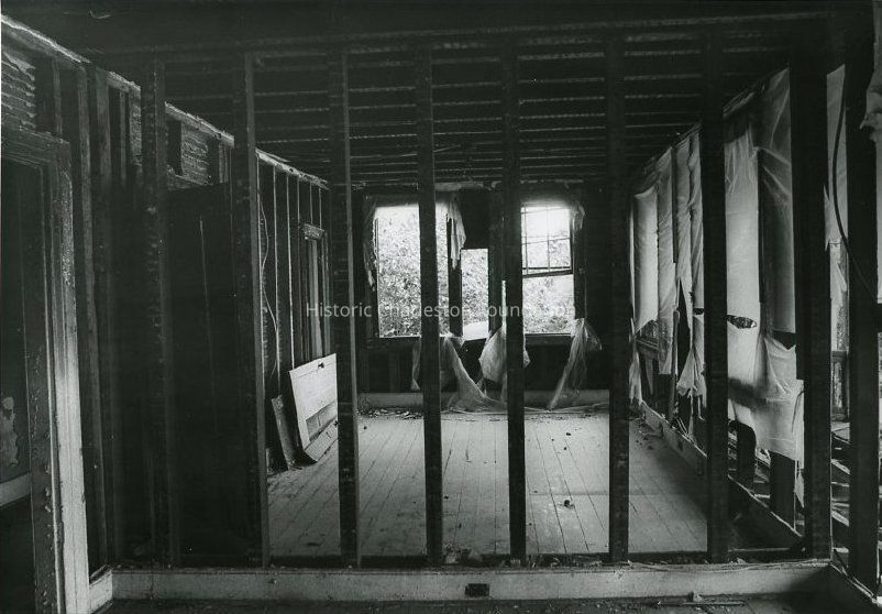 Eight B&W photographs of 32 Mary Street before rehabilitation, exterior and interior views: