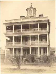 Constructed ca. 1782; renovated 1930s. A 19th century writer credited the design of this post-revolutionary house to a builder who worked in partnership with the great pre-Revolutionary Charleston housewright John Fullerton. This impressive 3-story masonry house retains its original 18th century cupola. The Tuscan-columned, double-tiered piazza with French doors and the Italianate style balustrades are probably mid-19th century additions. The first floor nine-over-nine windows, the front doorway, and the dormer with an arched window may remain from the original construction of the house. Some Neoclassical woodwork remains on the interior. Many alterations were made to the house in the 1930s.