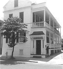 Constructed ca. 1838; restored 1980s. Although the main house was built as the prototype for seven others after the fire of 1838, the English-bond brick kitchen was a survivor from the late-18th or early-19th century. The property was described in an advertisement in 1863 as having 6 finished rooms, a stable for 3 horses, and a carriage house for 2 vehicles. The main house stands apart from its later neighbors because of its simpler late-Federal (rather than Greek Revival) detailing. Its main entry door studded with sidelights featuring cast-lead ornaments of dogwood blossoms and wheat sprays hints at an interior that boasts some of the rare surviving stenciled ceiling decoration in the city. (Poston, Buildings of Charleston.)