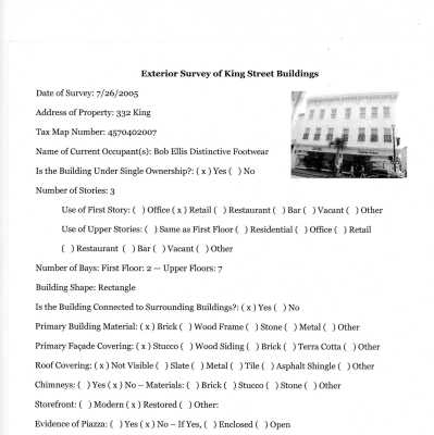 Related Units of Description: King Street Survey (KING.GEN.001) and King Street "General" files (KING.GEN.002)General Notes