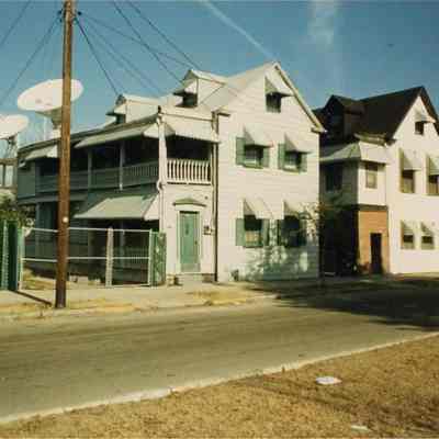 Two color photographs of 34 Calhoun Street (right) and 36 Calhoun Street (left). These houses were located on the north side of Calhoun Street just off of Washington Street.