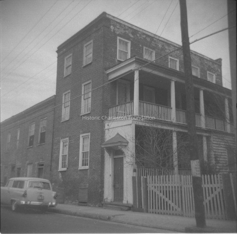 B&W photograph of 34 Anson Street (Mary Lanneau House), street elevation, corner view, before rehabilitation. "ARP" written on back.Collection