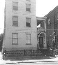 Constructed ca. 1843; rehabilitated mid-1980s. John McNellage acquired a vacant lot at this address from Robert Wilson at the beginning of 1843. Wilson and his family owned numerous city properties, particularly in Ansonborough. The three-story dwelling stands on a high brick foundations with two bays on each floor and a surmounting brick parapet, ornamented by cast-iron anthemion grills. On the south facade the parapet steps down toward the south and a double-tiered piazza shades this elevation. The late-Italianate style arched door hood dates from a postbellum renovation. (Poston, Buildings of Charleston.)