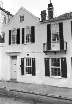 Constructed by 1747; restored 1920s. 35 Tradd Street is often used to illustrate early-18th century construction in the densely populated walled city. Most of the structures built in this area during this time contained passages to the rear work yards; most were only two stories with one or two rooms per story. During this time porches were restricted to outside rear stairs or small balconies on the exteriors of grander buildings. Street frontage in the walled city was at such a premium that most construction spanned from property line to property line, unlike later Charleston landscapes, which provide for a side yard. 35 Tradd Street was originally two buildings built by Col. Miles Brewton as part of Brewton's Corner (now 77 Church Street); these have been combined into a single family residence. (Poston, Buildings of Charleston.)