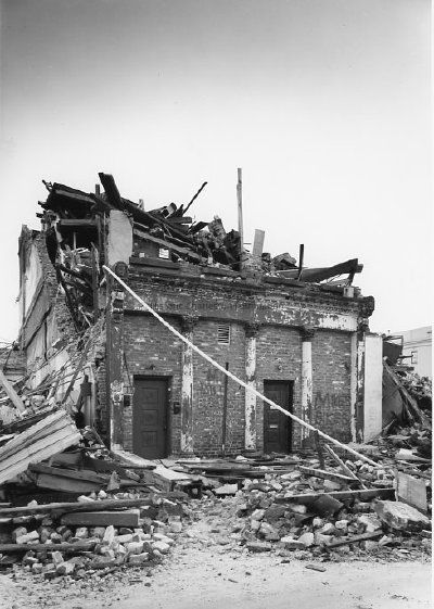 B&W photograph of 35 Hayne Street destroyed by Hurricane Hugo.